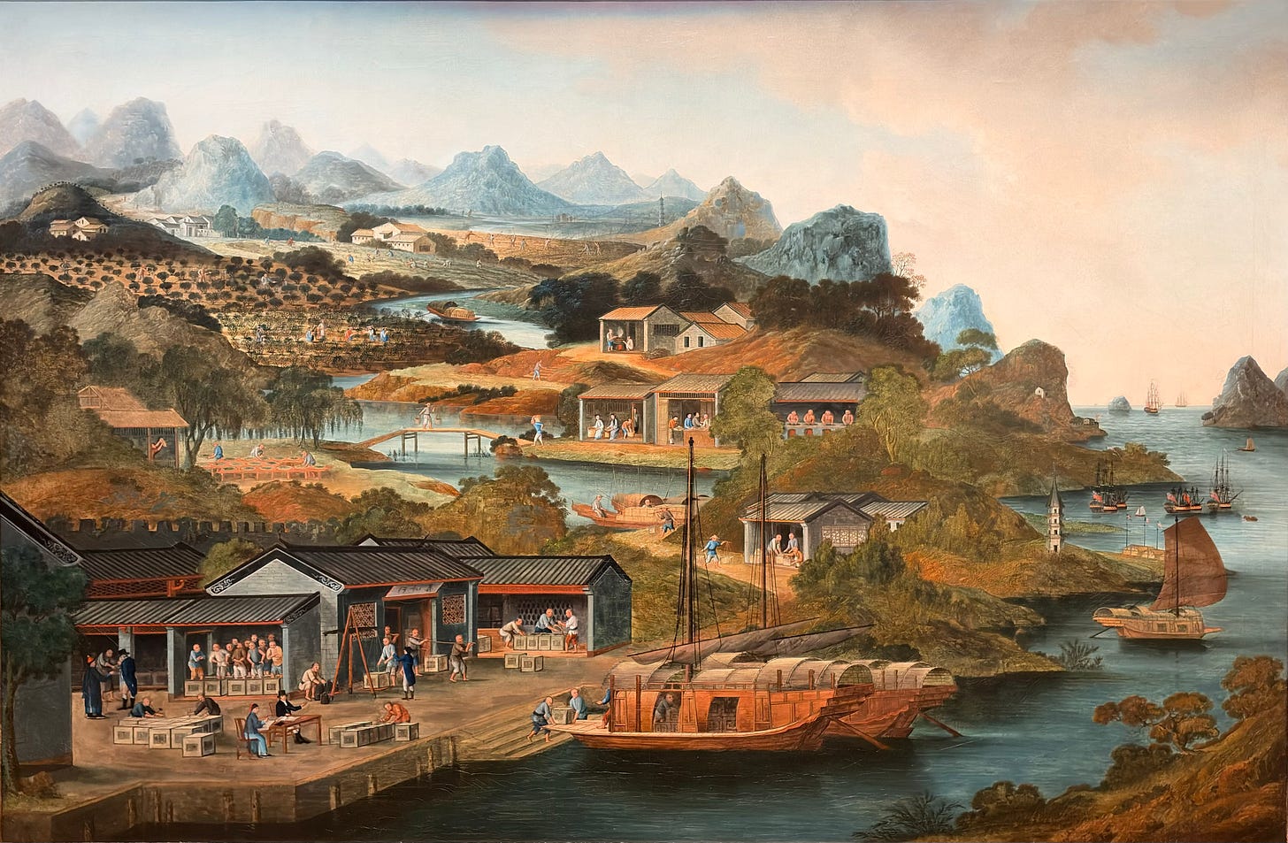 Tea production in China, Guangzhou, c. 1800 AD, oil on canvas - Peabody Essex Museum - Salem, MA